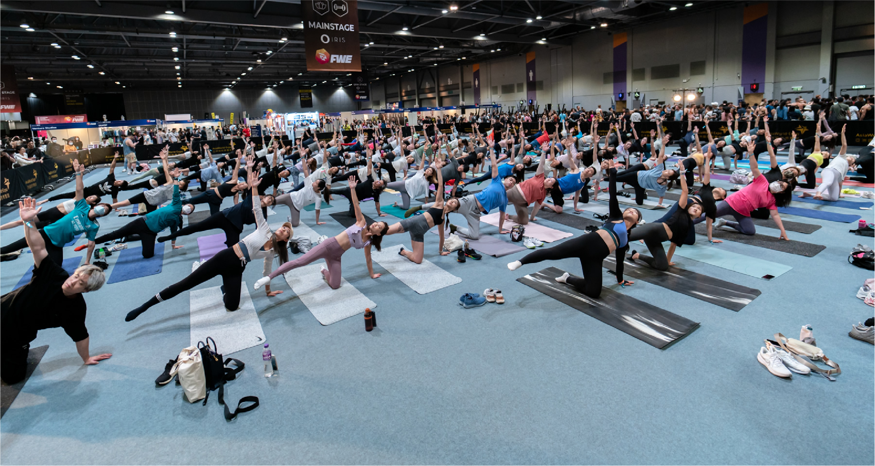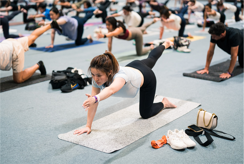 汇集全球众多生活方式品牌参展的FWE,除了健身爱好者们期待已久的 HYROX 体能耐力赛之外,今年还特别增设8大全新展区,为与会者带来更丰富多样的互动体验。博览会中还有一项人气活动就是PURE集团展开的万人瑜伽活动,男女老少齐聚,跟随和谐旋律,舒展全身关节,彻底放松身心。